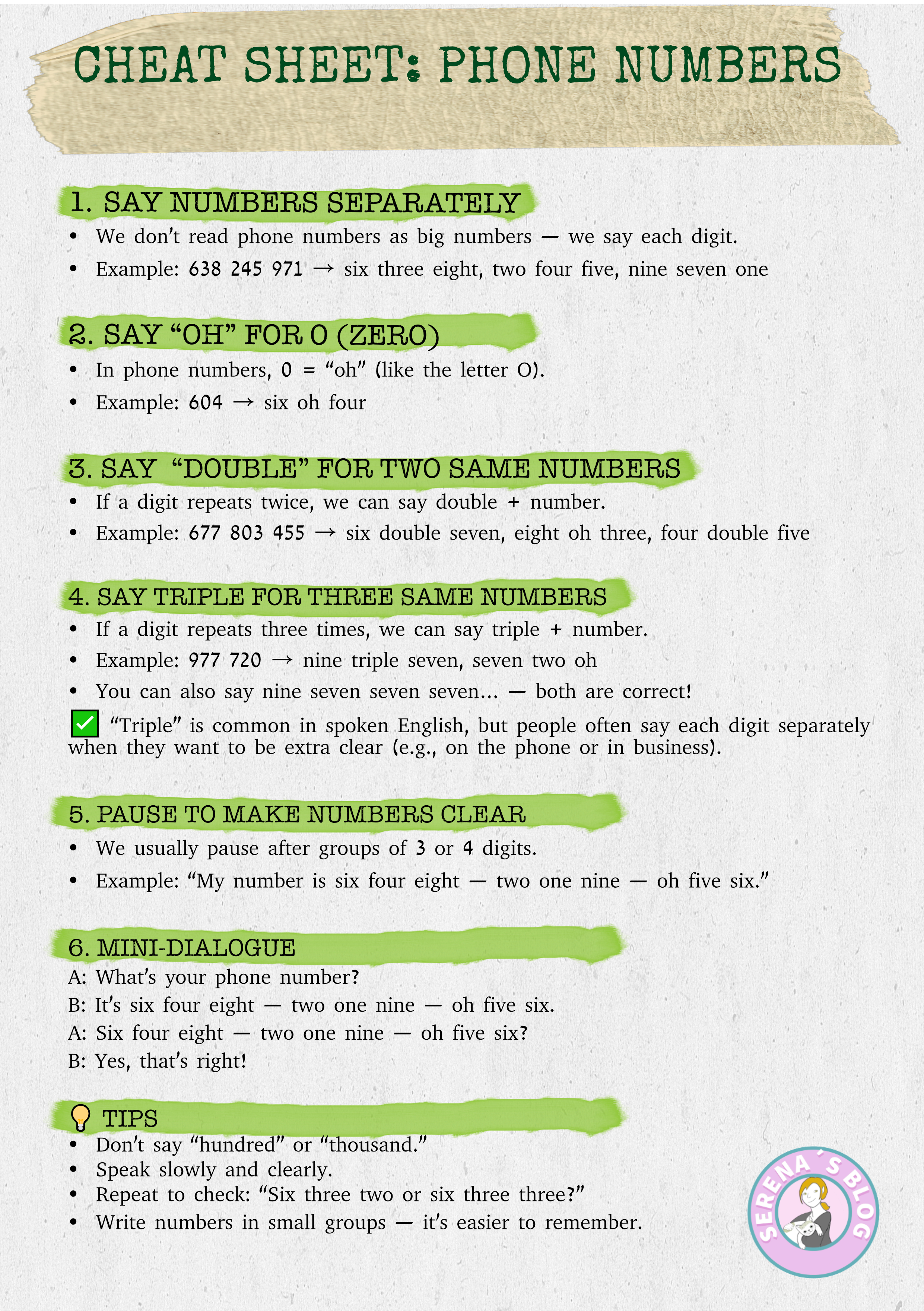 👉 Watch the video, repeat the examples aloud, and then try giving your real number (or make up a funny one!) in English.